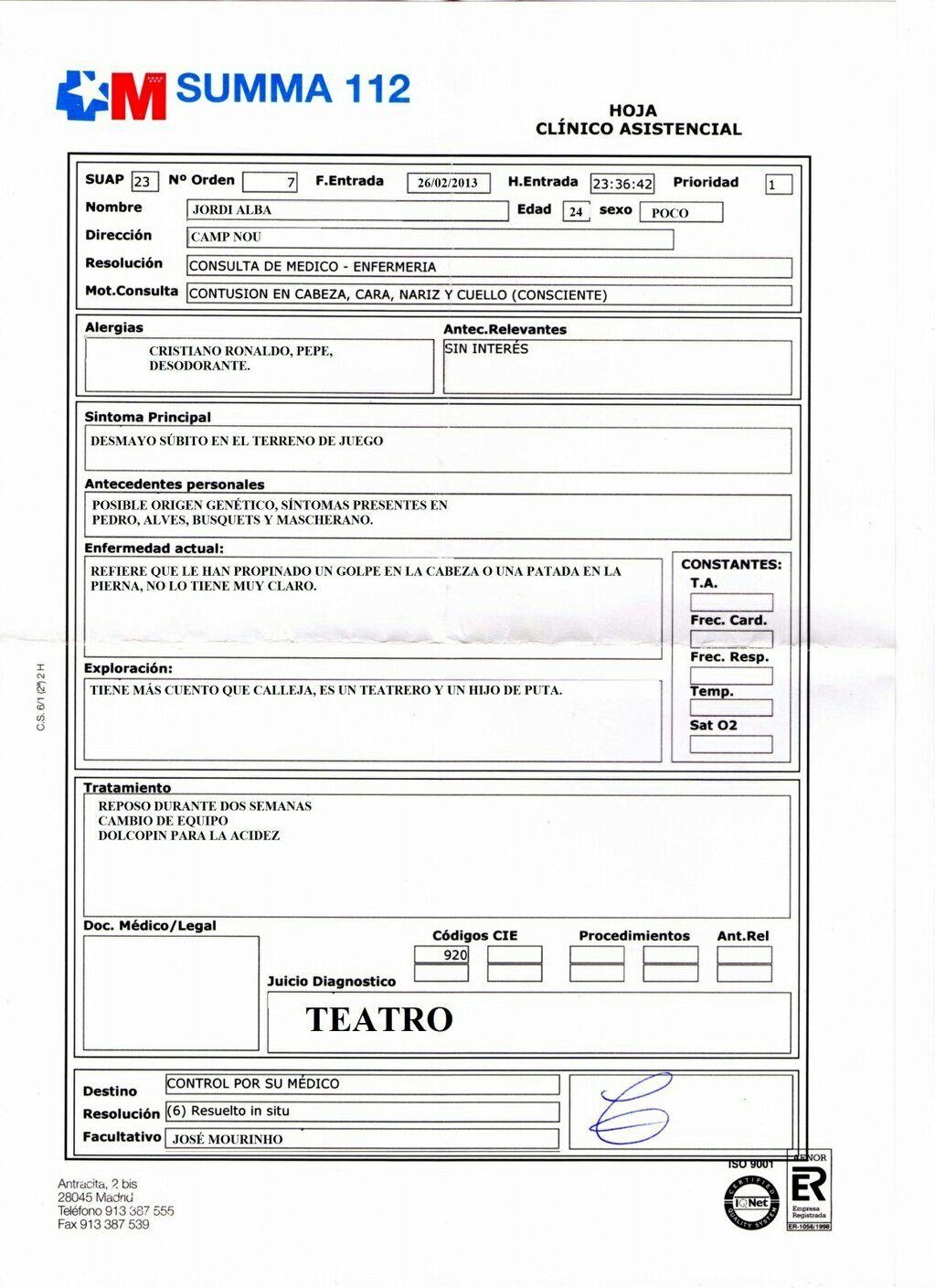 Un par de cosas más. Vergüenza debería darle a algunos madridistas, los más acomplejados, por desear el mal de Mourinho, que al final será el mal del Real Madrid. Vergüenza. Cuando se vaya, que yo espero que sea en 2064, le echarán de menos. O a lo mejor ni siquiera eso. Mourinho ya le había dado la vuelta a la tostada y de hecho su éxito contribuyó a la fuga de Guardiola y posterior reclusión primero en Nueva York y desde junio en Munich, pero lo de anoche es la constatación de que este entrenador se gana el sueldo que le pagan y que para sí quisieran muchos su autogestión. Y la segunda: si yo fuera Florentino Pérez desde hoy mismo pediría que la final de la Copa del Rey, ya sea contra el Atlético de Madrid (ojalá) o contra el Sevilla, se dispute en el Camp Nou. Todos los días, a todas horas, todos los minutos, portavoces del club reclamándole a la federación en público la celebración de la final en la ciudad condal. Ese será, ya lo advierto, mi leit motiv desde ahora y hasta que Villar se pronuncie oficialmente. Y mañana hablaré de Cristiano. Y de Varane. Y también de Diego López. Todos ellos magníficos intérpretes de la partitura que diseñó el mejor entrenador vivo de fútbol del mundo. Vergüenza tendría que darles a algunos madridistas...